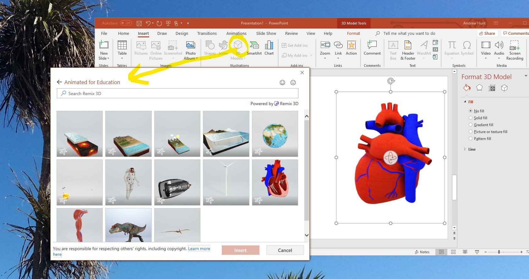 3D models appeared in Office a while ago – giving you the ability to add graphic content to your documents and angle it just right. Now, you can also add some that move. You can do this in most of the Office suite but it probably makes the most sense in Powerpoint.