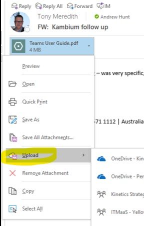 Some readers may point out there is an upload feature in Outlook already, but this of course only saves to OneDrive and Outlook groups – we like OnePlace because it lets you save to all your 365 locations.
