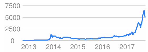 Bitcoin value in NZ dollars.  Source Google Finance